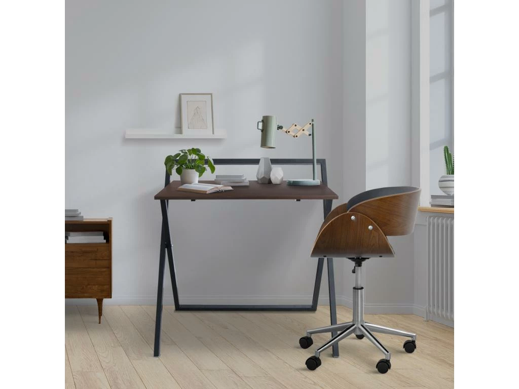 Table De Bureau Pour PC Avec Bibliothèque Bois Noir Métal Moderne