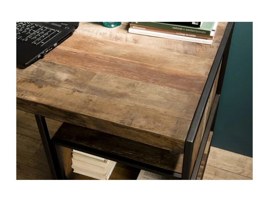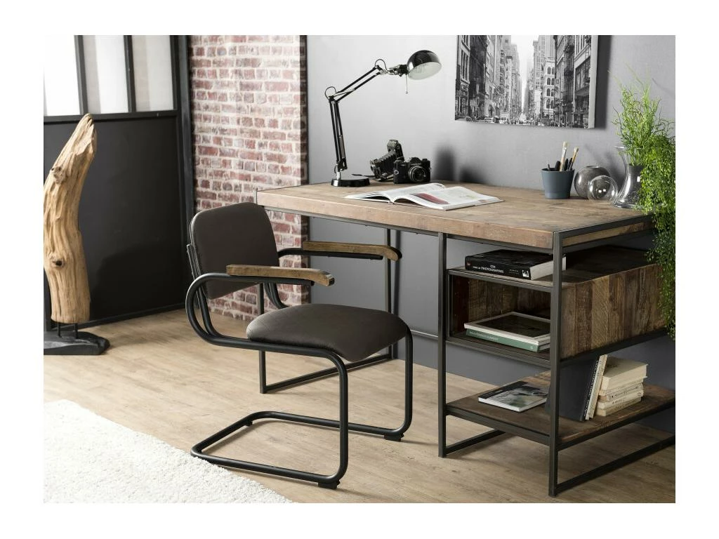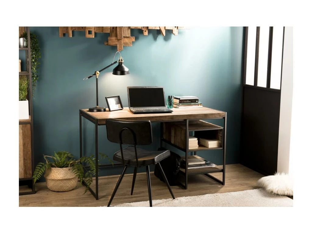 Table De Bureau Pour PC Avec Bibliothèque Bois Noir Métal Moderne