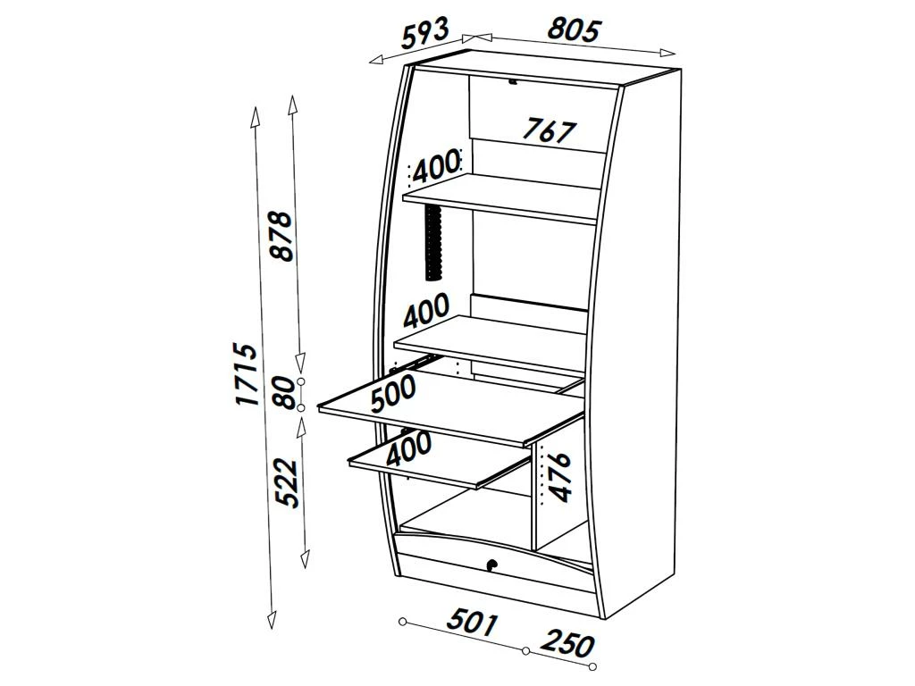 Largeur 80.5 cm Hauteur 171,5 cm Profondeur 59,3 cm