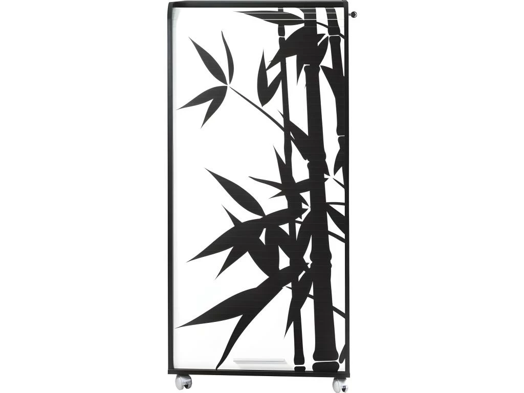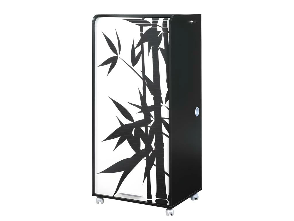 Armoire Informatique Mobile Noire avec Rideau Imprimé et 2 Tiroirs
