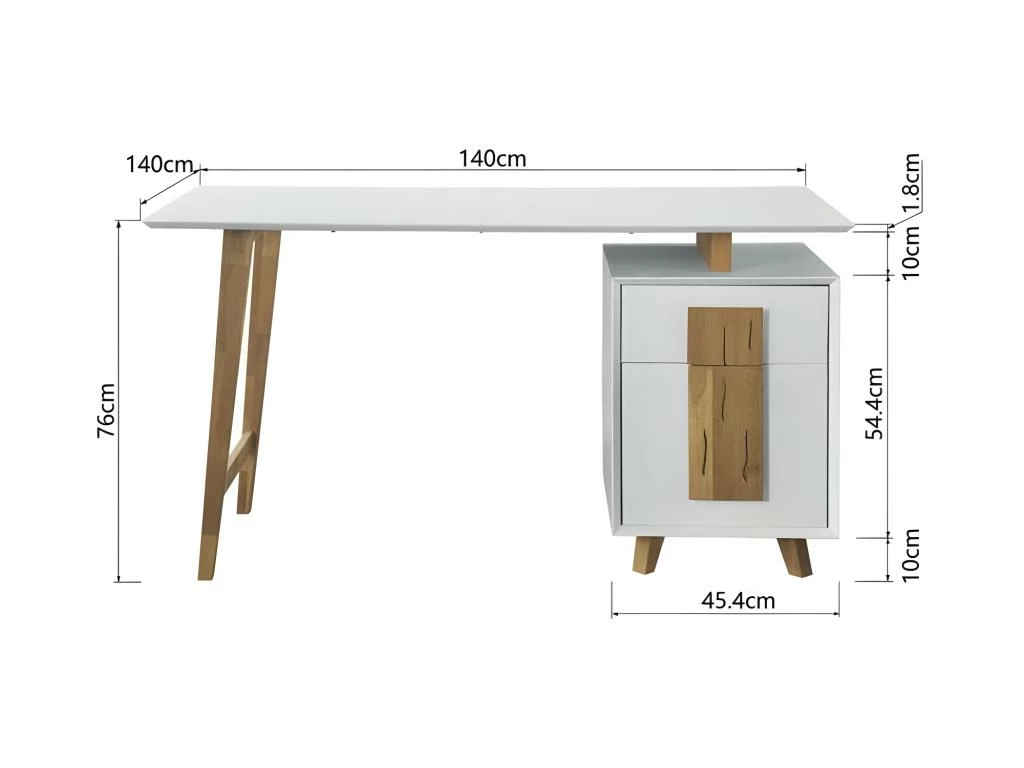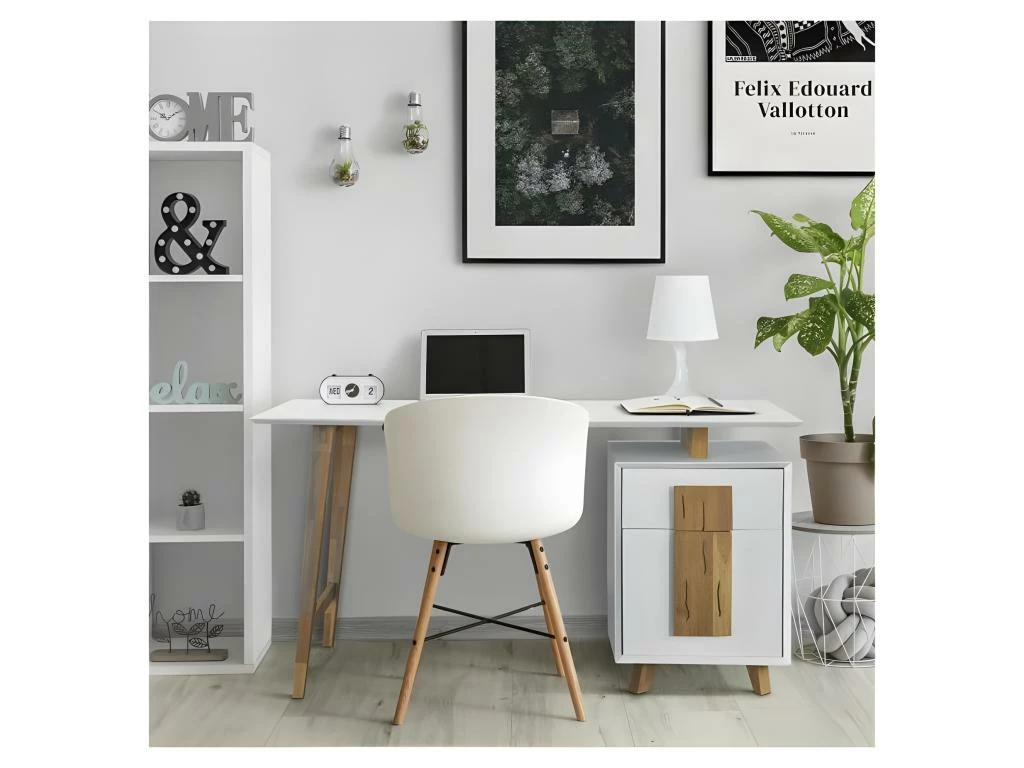 Bureau Lisboa Blanc, Table Pour PC, Style Industriel, 105 Cm Longueur