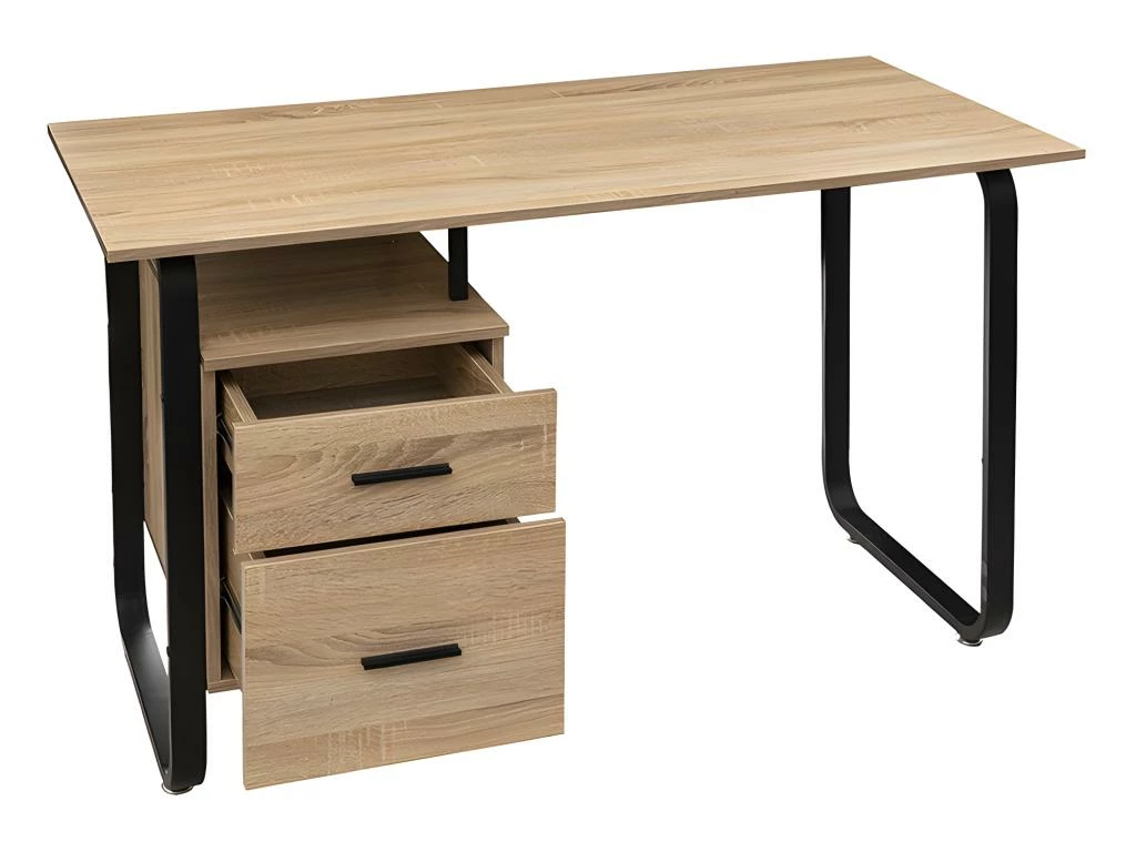 Adoptez un indispensable de la maison : le bureau 2 tiroirs effet bois et métal de la marque 5five. Pratique, même dans les petits espaces, il dispose d’un caisson de deux tiroirs. A monter soi même. Dimensions : L. 120 x l. 60 x H. 75 cm. Poids : 28 kg. Matière : Panneaux de particules et métal. Marque : 5five.