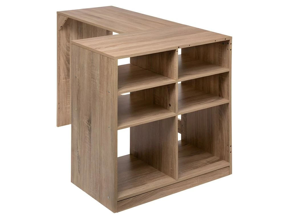 Bureau d’angle coloris naturel avec cases de rangement de la marque 5Five. Besoin d’un petit bureau pas cher ? Le modèle mix est fait pour vous. Ce bureau est compatible avec les rangements paniers Mix’n Modul de la marque 5five. Le caisson peut être placer à gauche ou à droite. A monter soi même. Dimensions : L110 x l69 x H75 cm. Poids : 27 kg. Matière : Fibres de bois MDF. Marque : 5five.