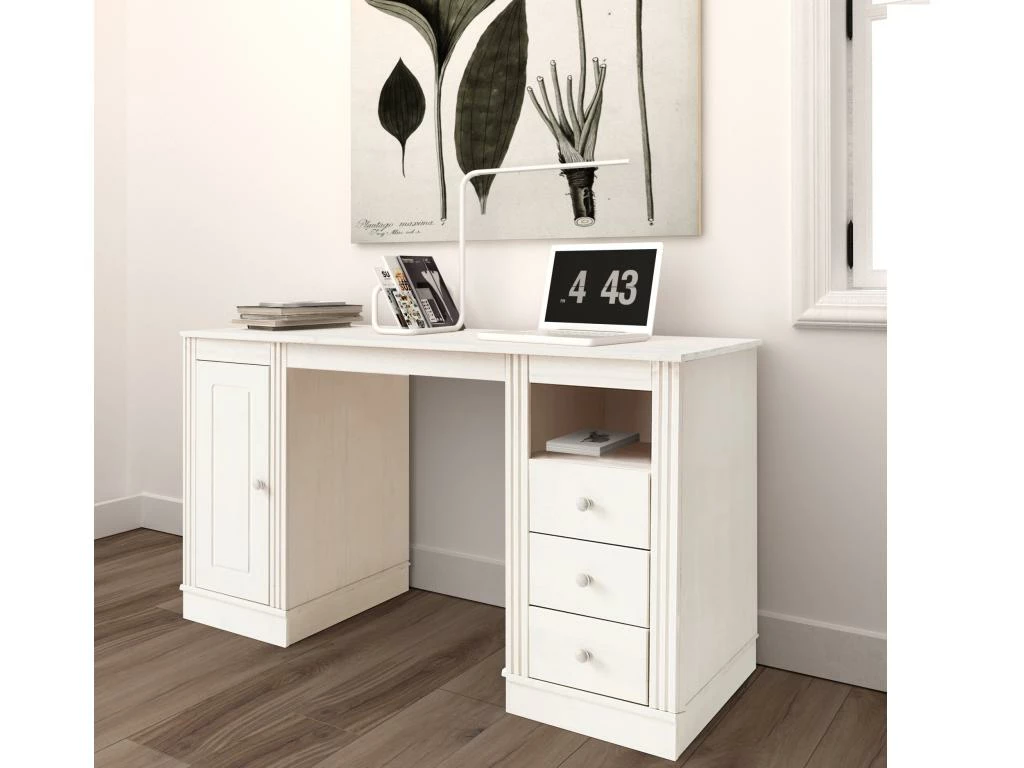 Bureau Avec 3 Tiroirs – MDF Et Métal – Blanc Et Doré – URENGA