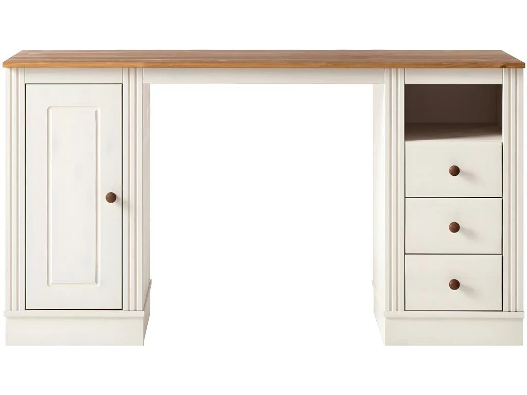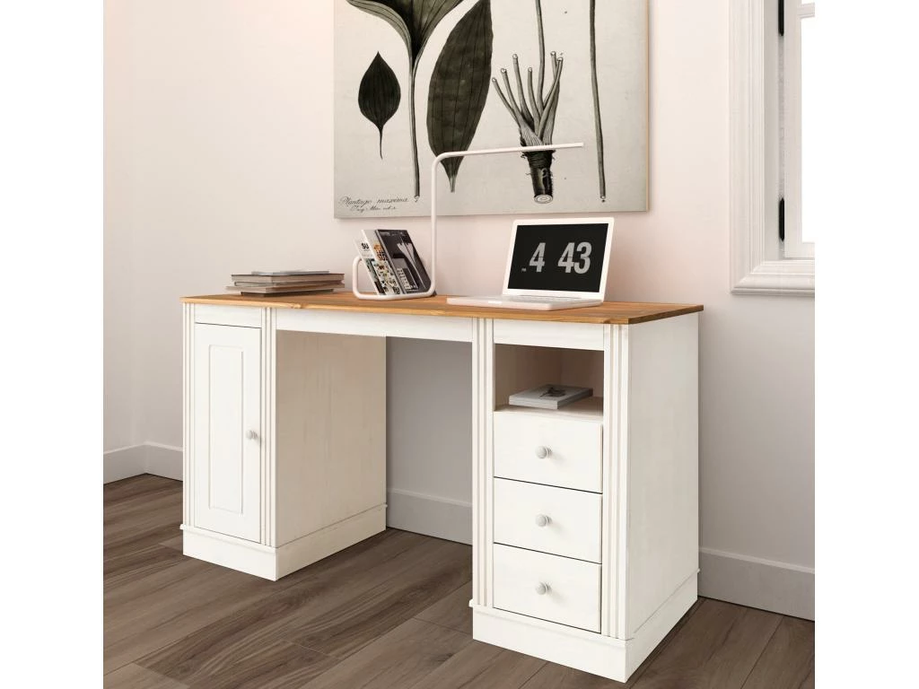 Bureau Extensible 2 Tiroirs Et 1 Niche – Coloris : Blanc Et Naturel – EVAN