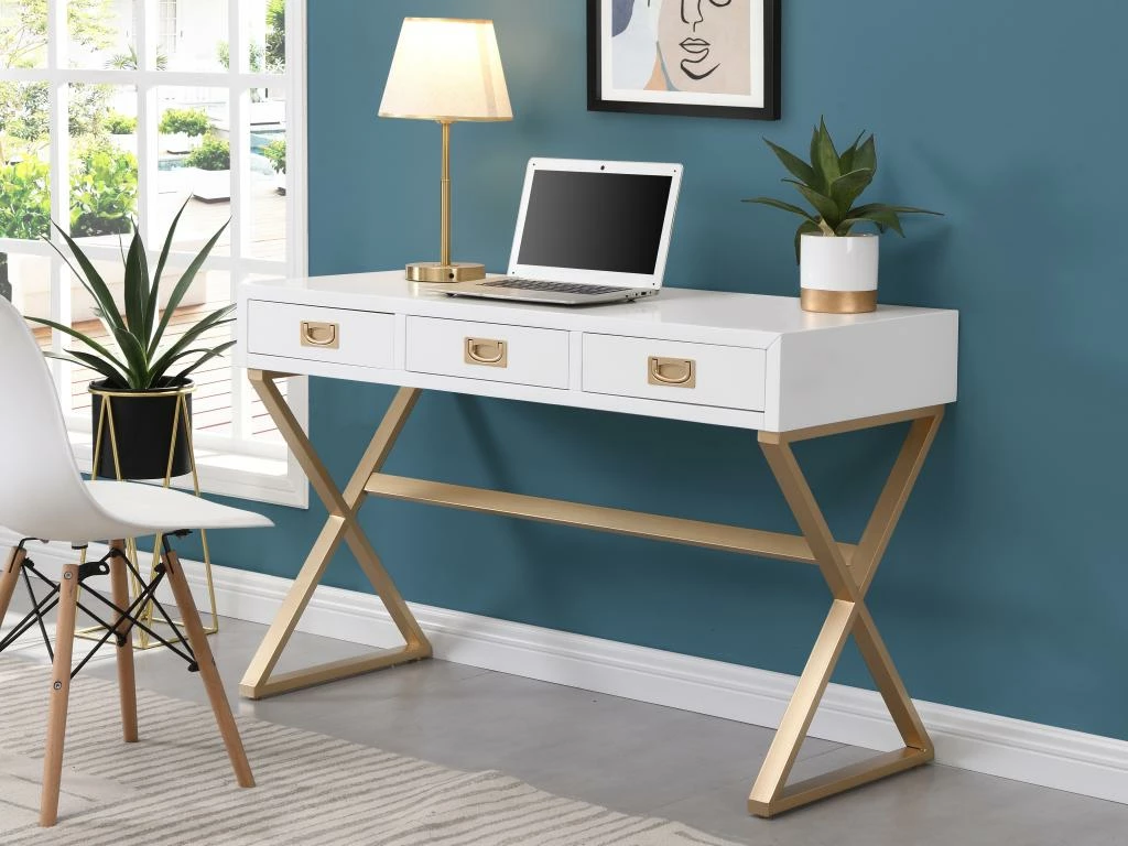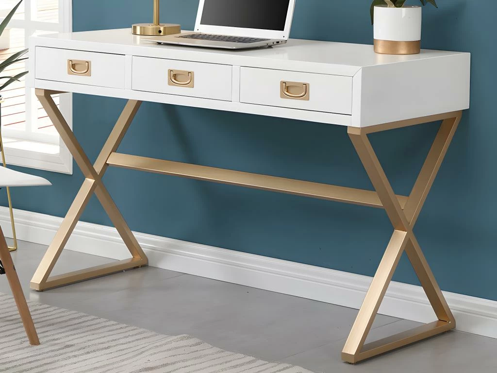 Le bureau art déco URENGA est le meuble fait pour vous ! Son design unique et ses finitions soignées en font un choix parfait pour votre espace de travail. Ses 3 tiroirs spacieux vous offriront un espace de rangement pratique pour garder vos essentiels à portée de main.