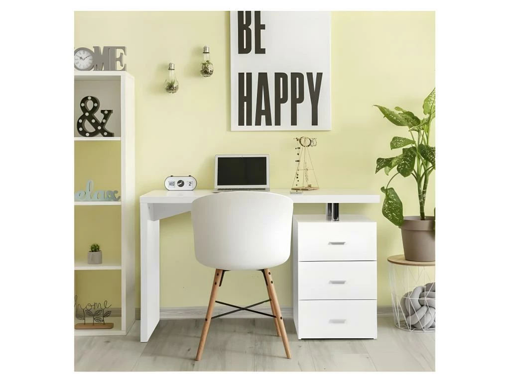 Bureau 1 Porte 1 Tiroir – Décor Bois Et Blanc – L 140 X P 76 X H 60 – HAMBOURG