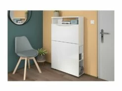 Secrétaire Avec 2 Portes – Avec LEDs – MDF – Blanc Lacqué – MELIONA