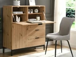 Secrétaire Avec 2 Porte Et 3 Tiroirs – MDF Et Métal – Coloris : Naturel – ERWIN
