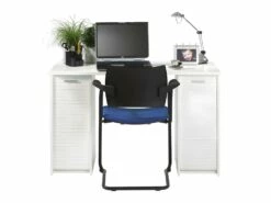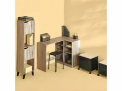 Bureau 2 Niches Réversibles Blanc/Chêne – AIKI – L 100 X L 52 X H 78 Cm