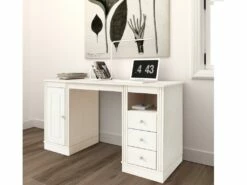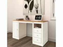 Bureau AMANI – 3 Tiroirs Et 1 Porte – MDF – Blanc Laqué Et Chêne