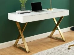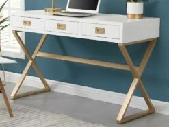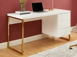 Bureau Avec 3 Tiroirs – MDF Et Métal – Blanc Et Doré – URENGA