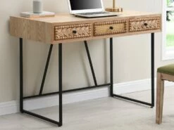Bureau Avec 3 Tiroirs – MDF Et Métal – Naturel Et Noir – LISELA