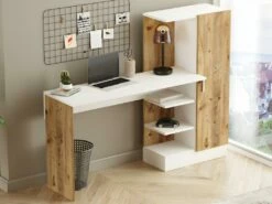 Bureau Avec Armoire De Rangements – Coloris : Naturel Et Blanc – MILARIA