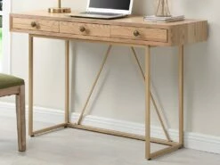 Bureau Console Avec 3 Tiroirs – MDF Et Métal – Naturel Et Doré – DEYAM