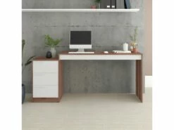Bureau D’Angle Châtaignier Et Blanc Caisson 3 Tiroirs Et Armoirette