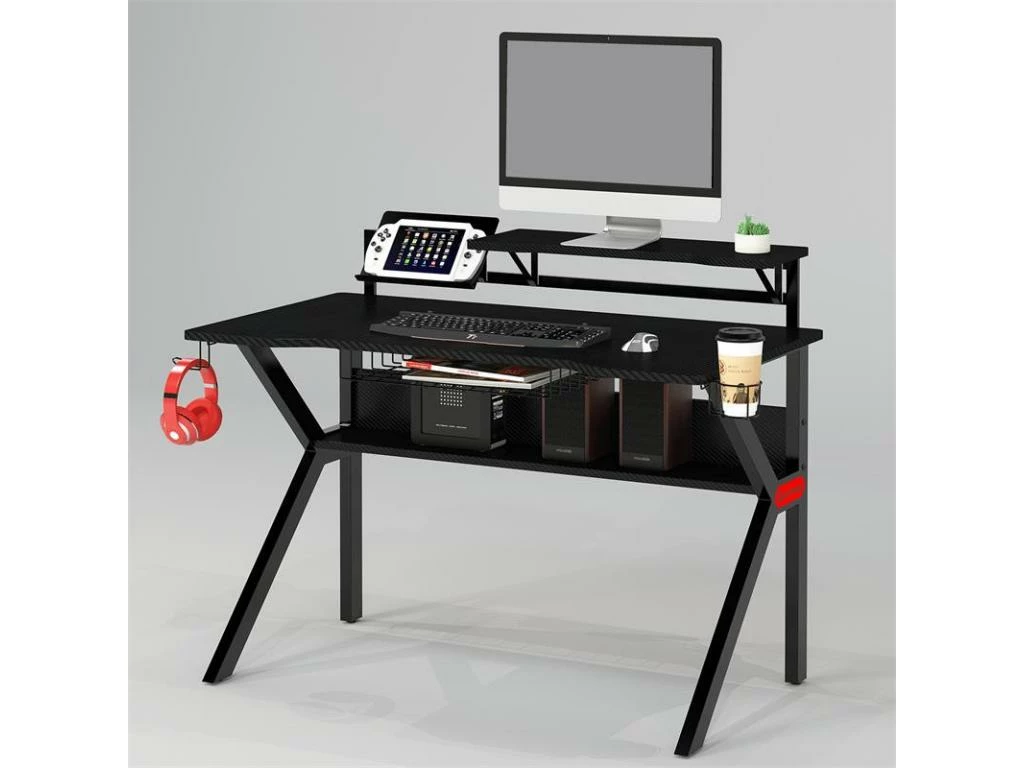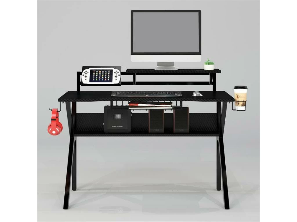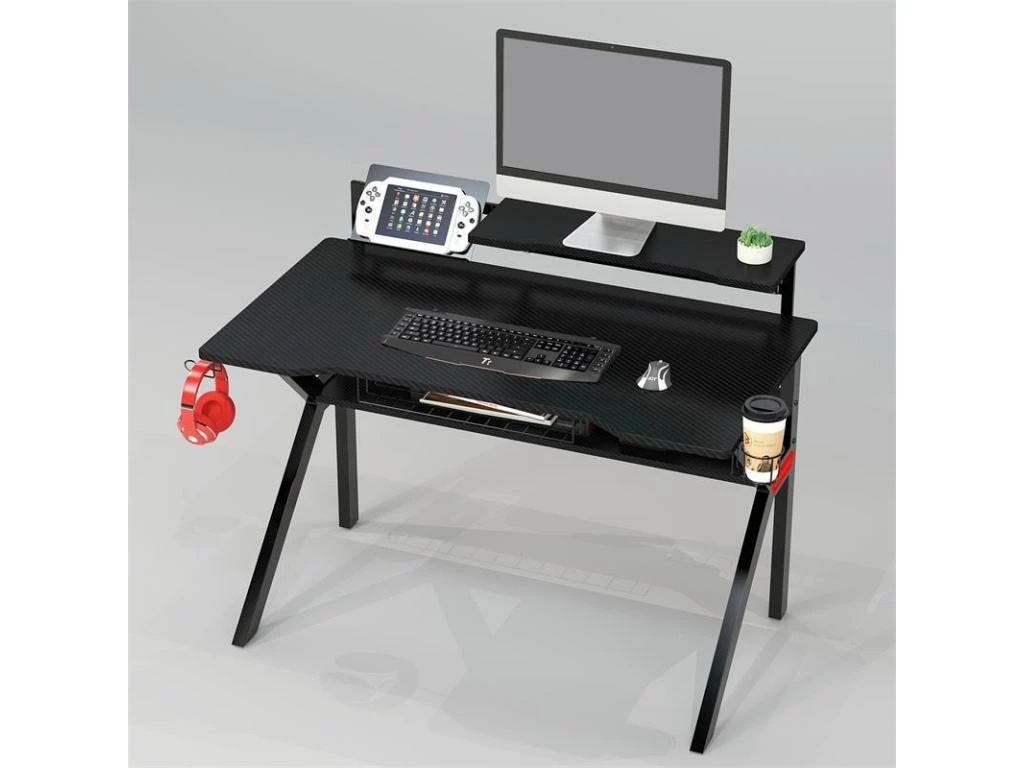 Désirant satisfaire ses clients gamers, Mycocooning a sélectionné cet élégant bureau noir adapté à leurs activités ludiques. Son plateau principal MDF en fibre de carbone est assez large pour accueillir deux écrans. Épuré, il permet un accès aisé aux branchements du matériel, contribuant aussi à une ventilation optimale de l’unité centrale. Son châssis en métal léger, rend ce bureau à la fois solide et facile à déplacer. Un porte-tasse est inclus dans sa structure, sécurisant ainsi votre matériel informatique.