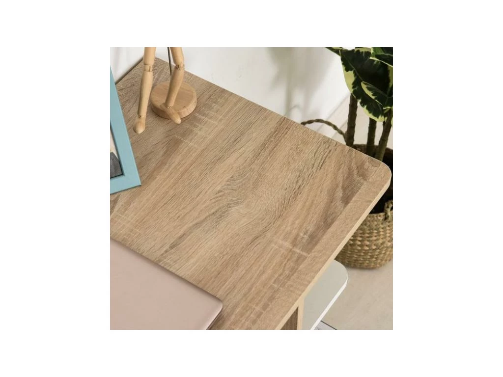 Sobre et bicolore, ce bureau informatique BILL de MYCOCOONING séduit par sa sobriété. Les matériaux imitation chêne clair et blanc le rendent intemporel. Il peut se fondre dans tous les types de bureau d’intérieur. Le grand plateau peut accueillir un ordinateur portable ou une unité centrale ainsi qu’une imprimante. Sur le côté, 3 étagères latérales faciles d’accès permettent d’avoir toujours sous la main les livres, manuels ou dictionnaires.