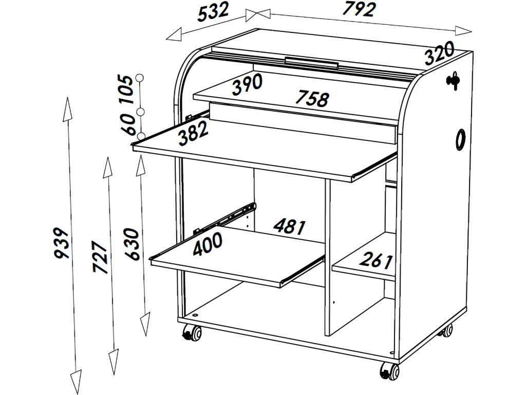 – 1 tablette coulissante (clavier + souris) avec raidisseur et qui se bloque
