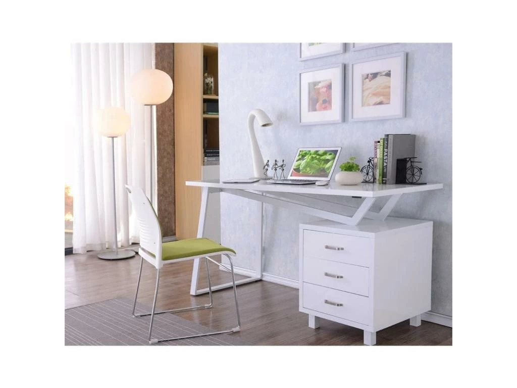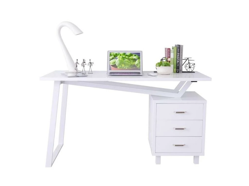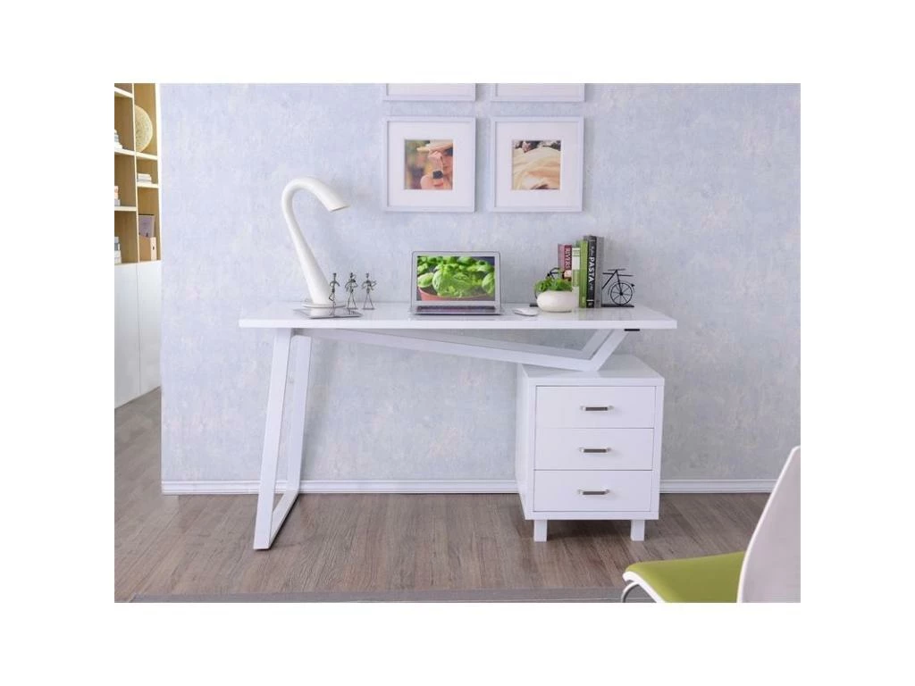 Le bureau informatique en bois couleur blanc est unique de par l’originalité de ses lignes. Idéal pour organiser votre coin informatique, il est fonctionnel avec ses 3 tiroirs inclus dans lesquels vous pourrez ranger papiers et matériel informatique.