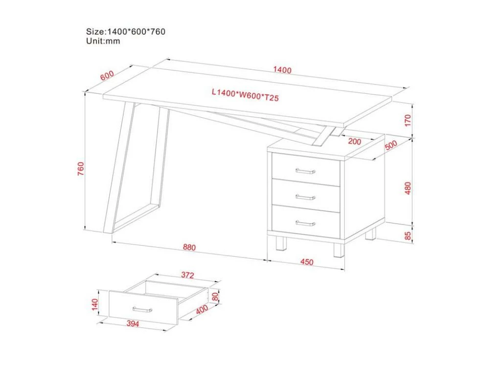 - Le bureau est réversible, vous pouvez mettre les tiroirs à droite comme à gauche