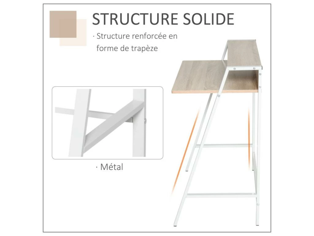 MYCCOONING vous propose ce bureau multi-usage Jul au design urbain et épuré, idéal pour équiper une chambre ou une pièce de travail. Offrez-vous un cadre de travail agréable et fonctionnel avec notre bureau informatique Jul. Son grand plateau offre une surface de travail optimale, pouvant servir comme table d’accueil pour un ordinateur, bureau d’étude ou même comme table de jeu. L’étagère supérieure offre une grande capacité de rangement. Le châssis en métal garantit la stabilité et la solidité de ce bureau informatique.