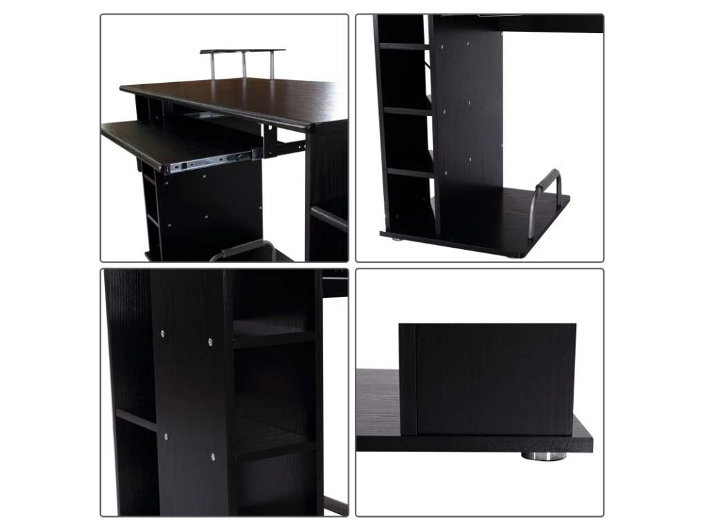 Ce Bureau informatique Tropico Noir en vente sur notre site, MyCocooning, est sobre et élégant avec son design très moderne. Il vous offre une grande surface de travail avec en plus une tablette au coin pour votre imprimante. Ce bureau est facile à monter un coup de chiffon suffit pour le nettoyer. Il est stable, solide et résistant.