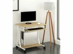 Petit Bureau Informatique – Roulant – Blanc/aspect Bois De Chêne