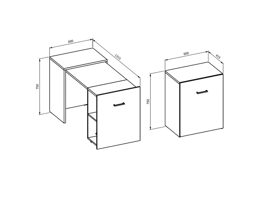 Bureau repliable spécial petit espace avec caisson de rangement collection FLIP.