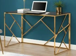 Bureau En Verre Trempé Et Acier – Doré Et Noir – ATHENA De Pascal Morabito
