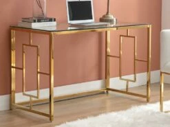 Bureau En Verre Trempé Et Acier – Doré Et Noir – ATHENA De Pascal Morabito