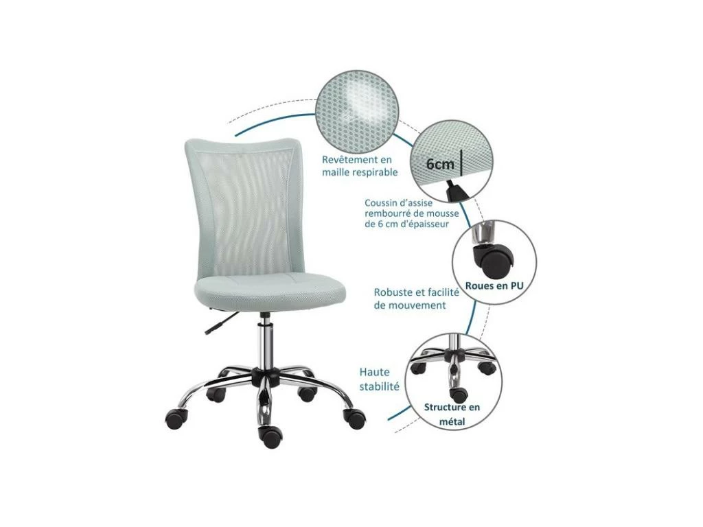 - Matériaux principaux : tissu en maille, garnissage mousse, métal chromé