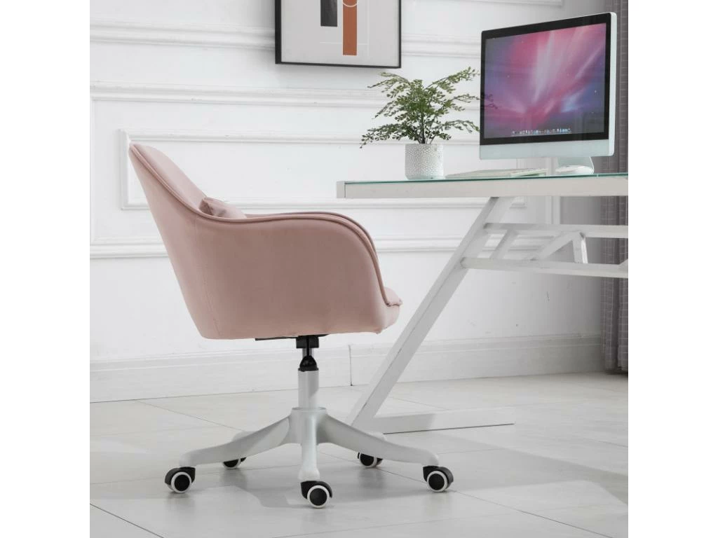 Chic et apaisante, la chaise de bureau aspect velours Inès de MYCOCOONING arbore des lignes élégantes. Elle dispose d’un système de massage par vibrations intégré dans son coussin lombaire. Le branchement USB dispense d’être proche d’une prise secteur. Ce fauteuil confortable est réglable en hauteur et il pivote à 360°.