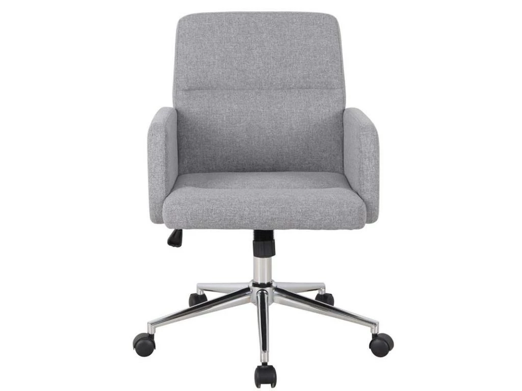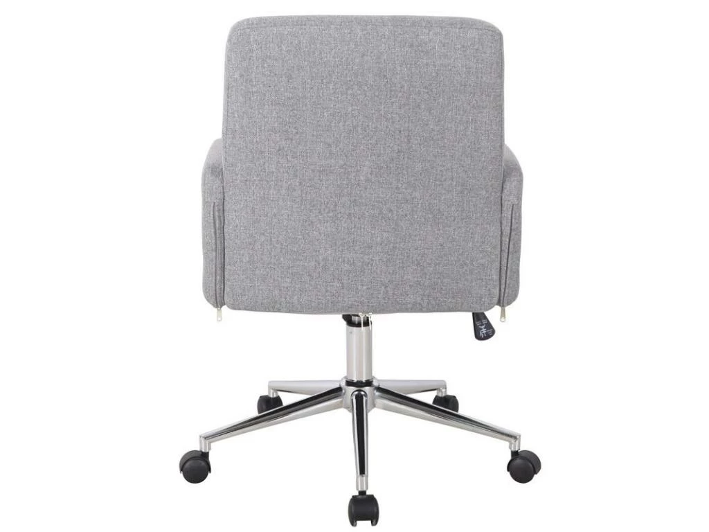 Cette chaise de couleur grise convient parfaitement à un bureau chic. Elle apporte un grand confort avec son siège et son dossier en tissu (100% polyester). Les personnes de grandes tailles n’auront pas de problème pour s’asseoir grâce à ses dimensions 50×50 cm. Cette chaise de bureau de 87cm-95cm de hauteur a un réglage en hauteur continu. Elle vous fournit une certaine mobilité avec son siège pivotable à 360°. Avec un pied en étoile de cinq branches et ses roulettes appropriées pour sol souple, son déplacement est aisé. Ce pied garantit une grande sécurité et une bonne résistance. Veillez par contre de ne pas dépasser la charge maximale de 100kg. Grâce à ses accoudoirs, son assise et son dossier de 58cm, vous pouvez bénéficier d’un moment de détente au bureau. MyCocooning vous livre votre mobilier dans les temps.