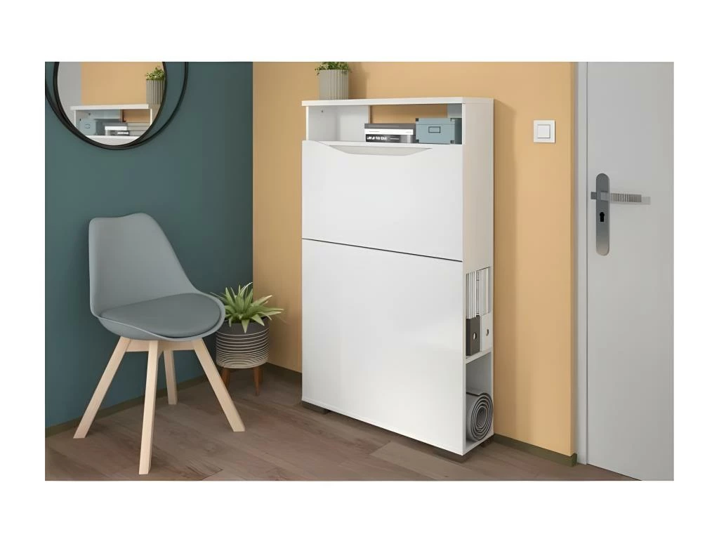 Bureau AMANI – 3 Tiroirs Et 1 Porte – MDF – Blanc Laqué Et Chêne