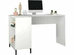 Bureau D’Angle Châtaignier Et Blanc Caisson 3 Tiroirs Et Armoirette