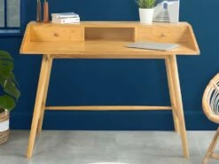 Bureau Droit Design Avec Caisson De Rangement Collection OFFICE Coloris Chêne Et Gris.