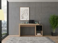 Bureau Extensible 2 Tiroirs Et 1 Niche – Coloris : Naturel Et Noir – EVAN