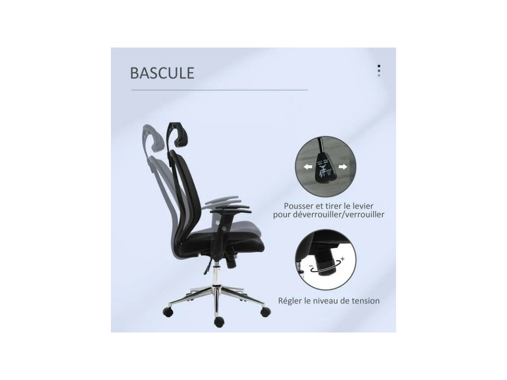 - Dim. dossier (appui-tête non inclus) : 55L x 47H cm