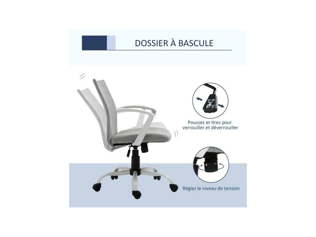 - Dim. dossier : 40L x 49H cm (jusqu’à assise)