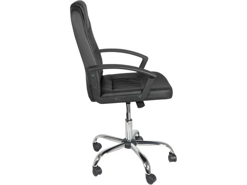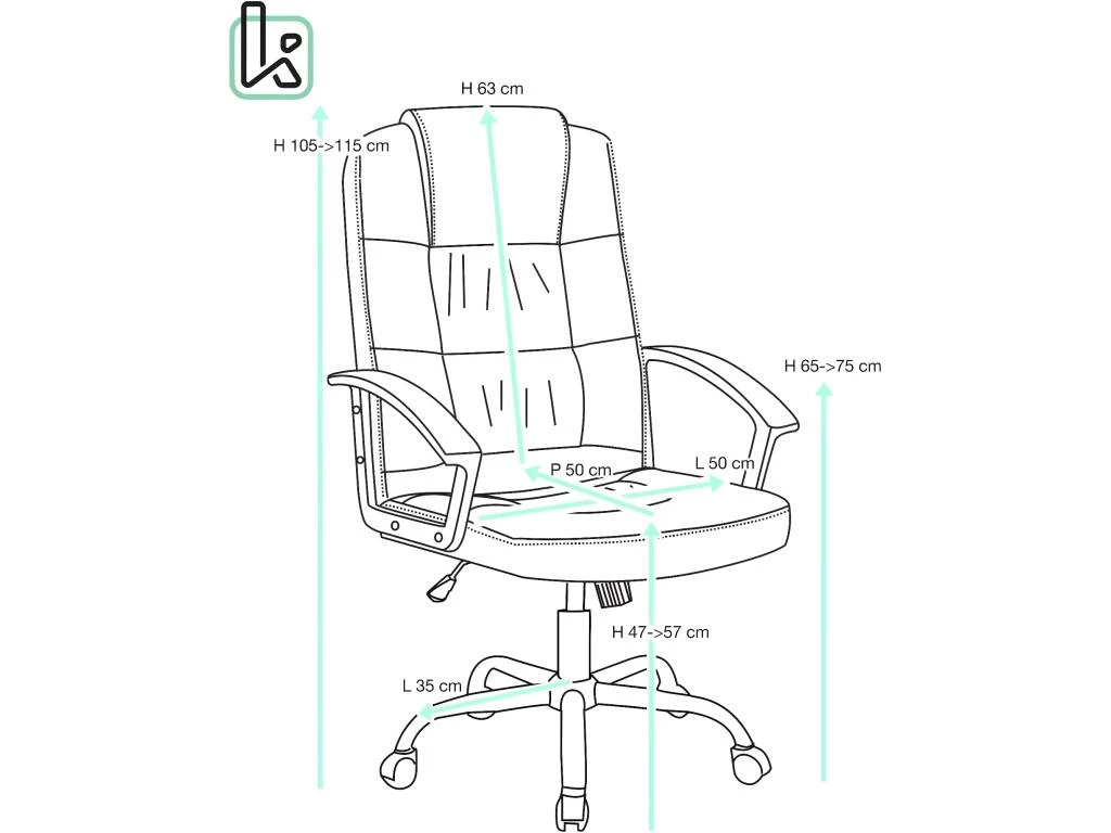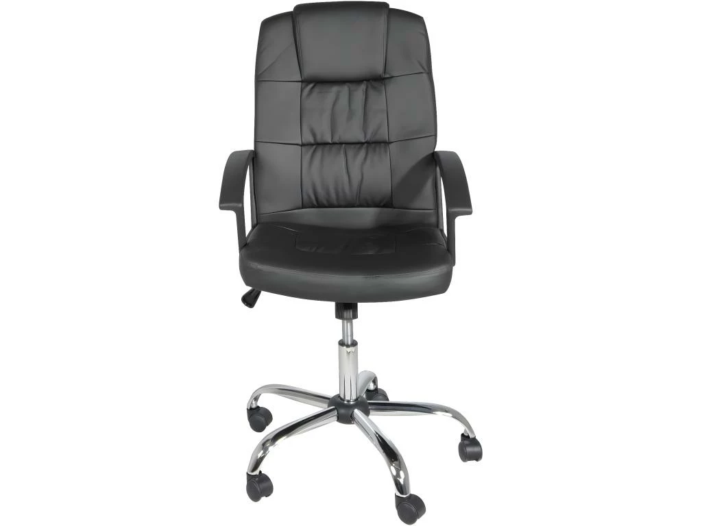 Recouvert de Simili PU Noir, doux au touché, résistant et facile d’entretien. Siège basculant, hauteur d’assise réglable, pivotant à 360° le tout monté sur un élégant pied chromé en étoile équipé de roulettes souples.