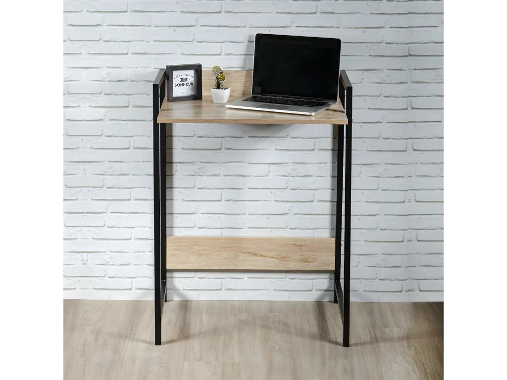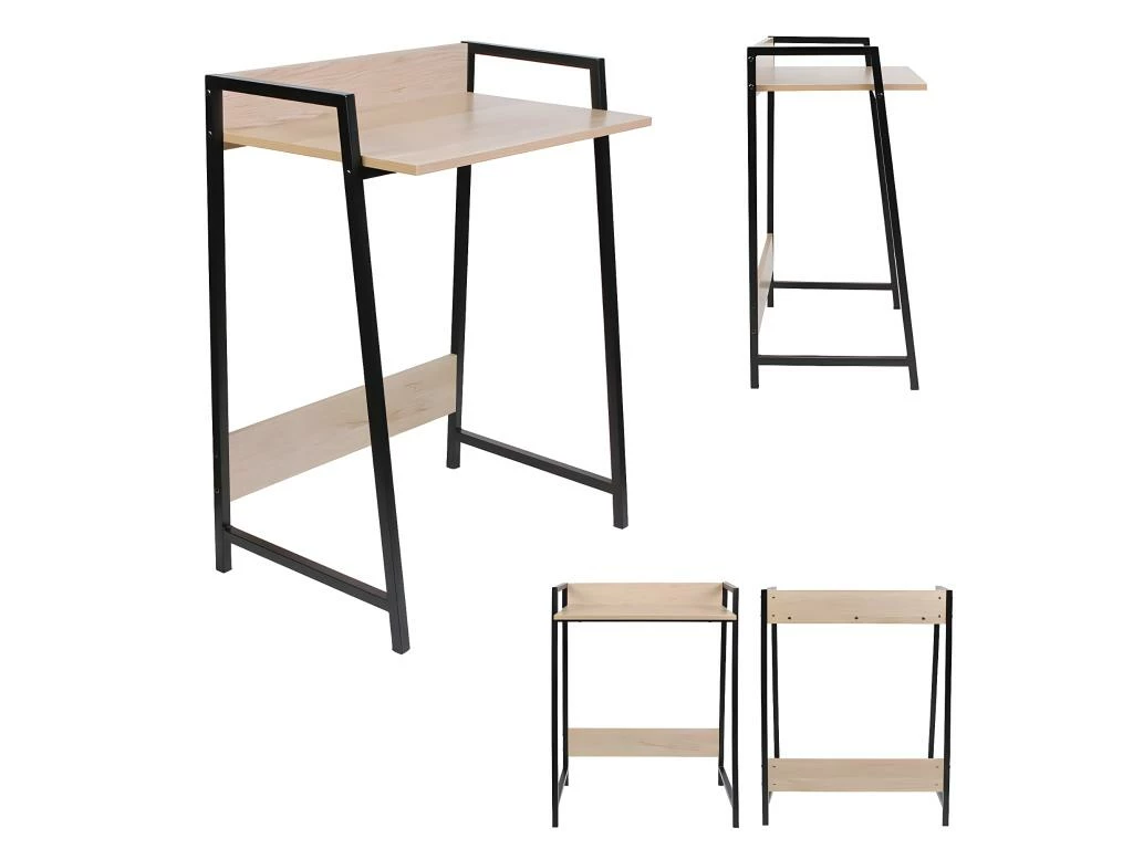 Piétement en acier coloris noir. Plateau en panneaux de particules, finition aspect bois.