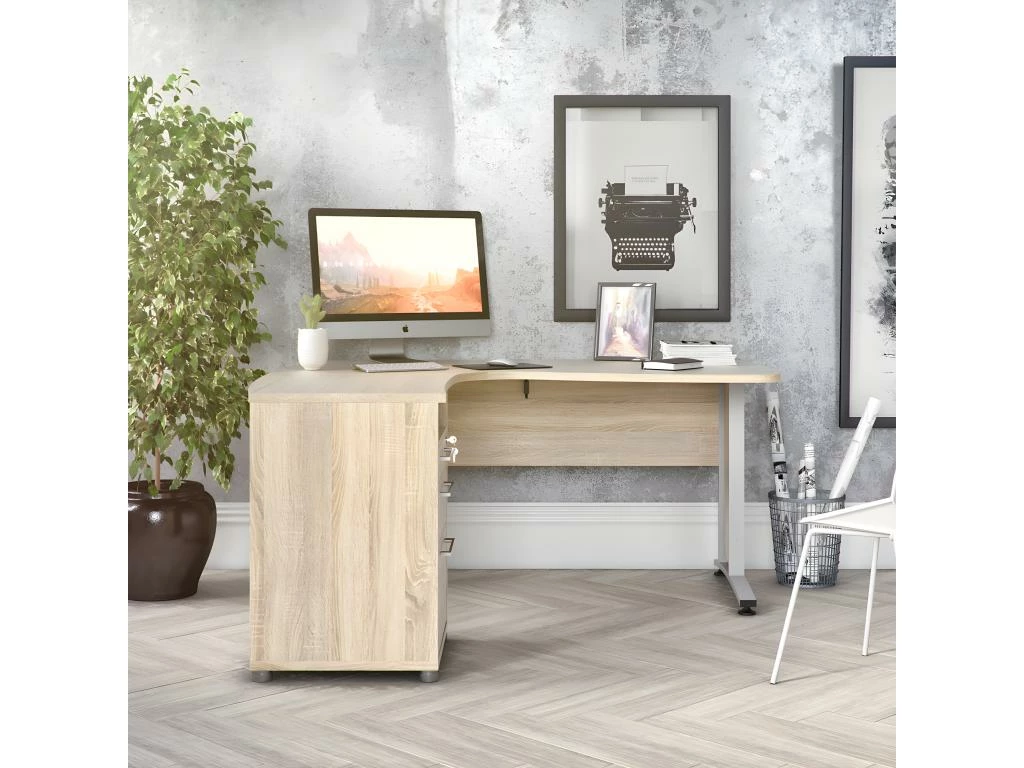 Bureau Table Meuble Travail Informatique De Coin En Forme De L Noir 0502081