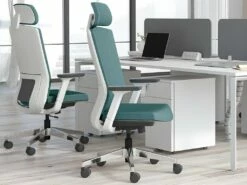 Fauteuil De Bureau Professionnel – Avec TĂȘtiĂšre – Tissu – Bleu – VOLTI