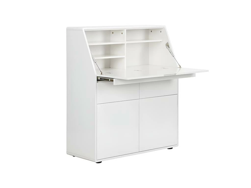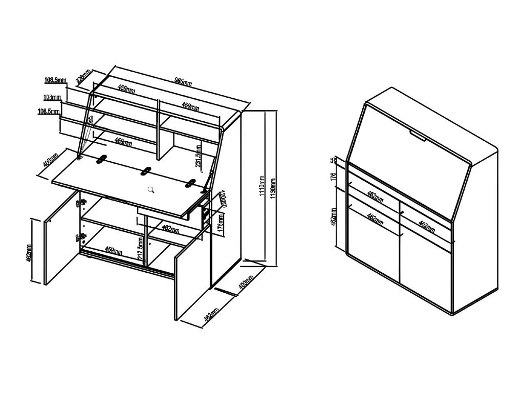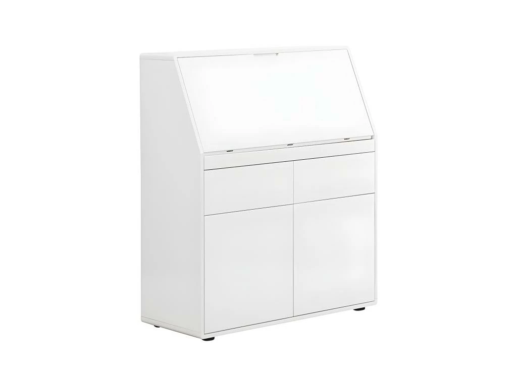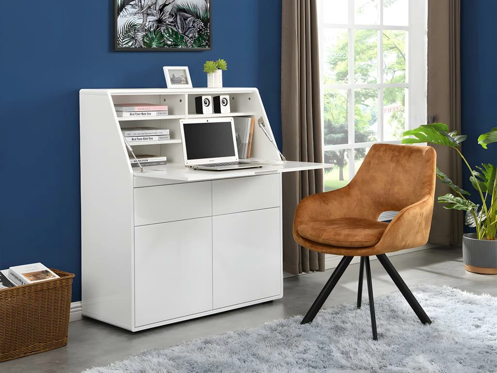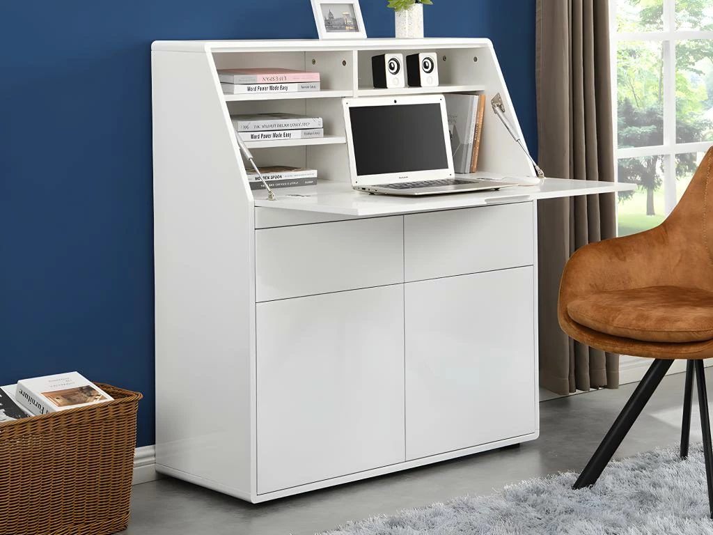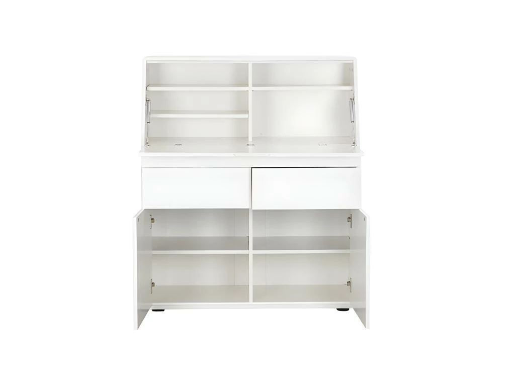 Le bureau secrétaire BAGUA est fait de MDF mélaminé blanc laqué. Il se compose de 2 portes, 2 tiroirs et d’un plateau rabattable. Ses étagères vous permettront de disposer aisément vos livres et autres accessoires !